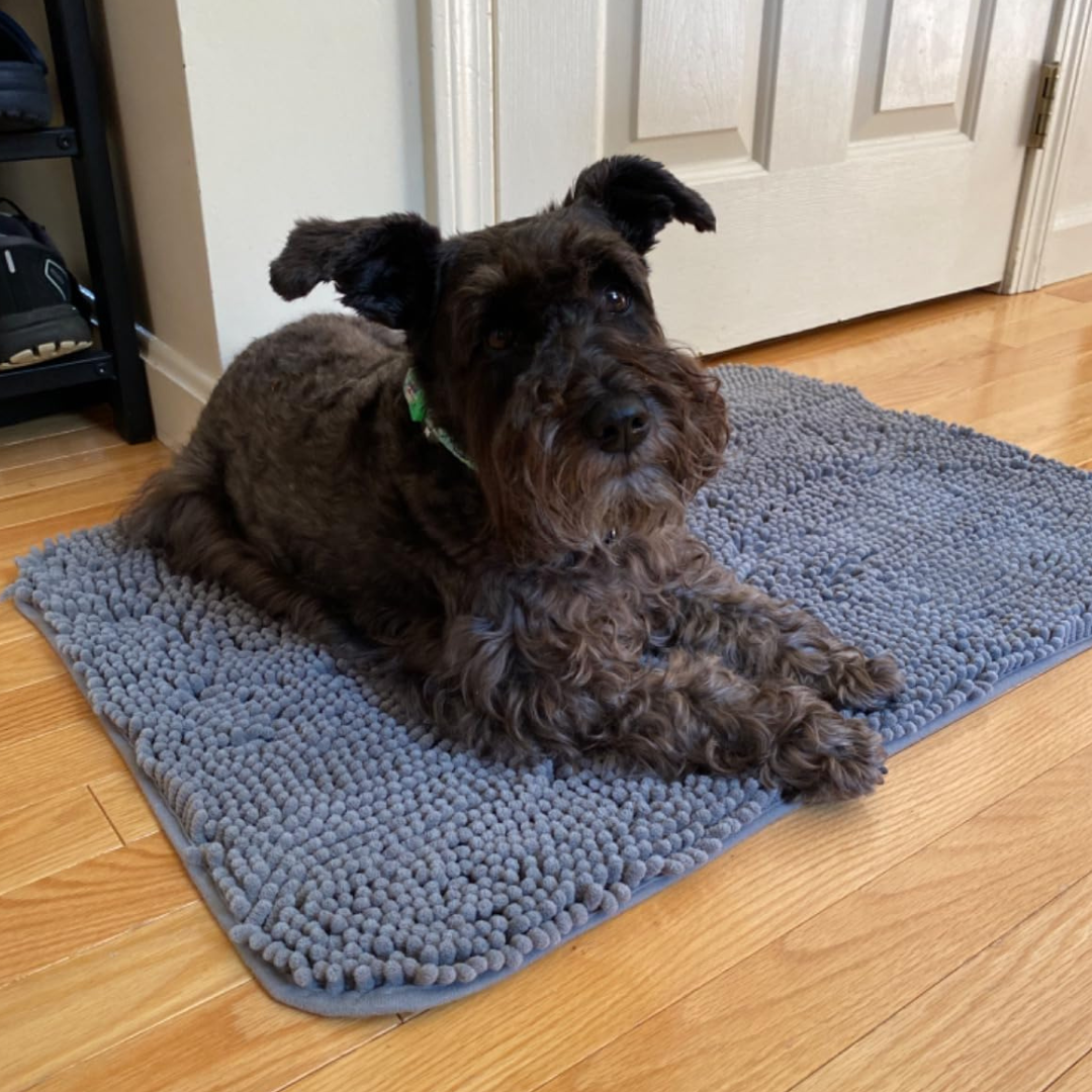 The non-slip backing keeps the mat firmly in place, even when excited paws race through the door. The soft microfiber feels comforting under your dog’s feet and dries quickly so it never stays soggy or smelly.