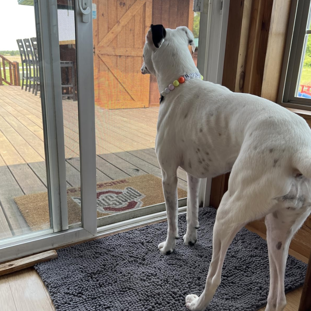 Its ultra-dense fibers catch mud, water, and debris the moment your dog walks in, keeping your floors clean without towel-wiping or chasing them across the house.