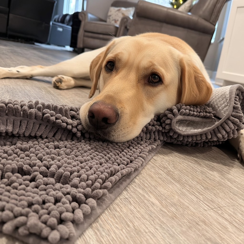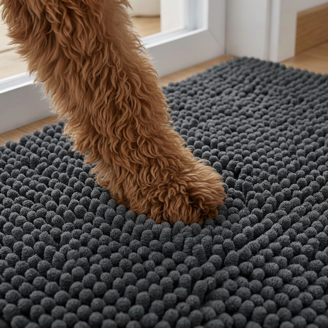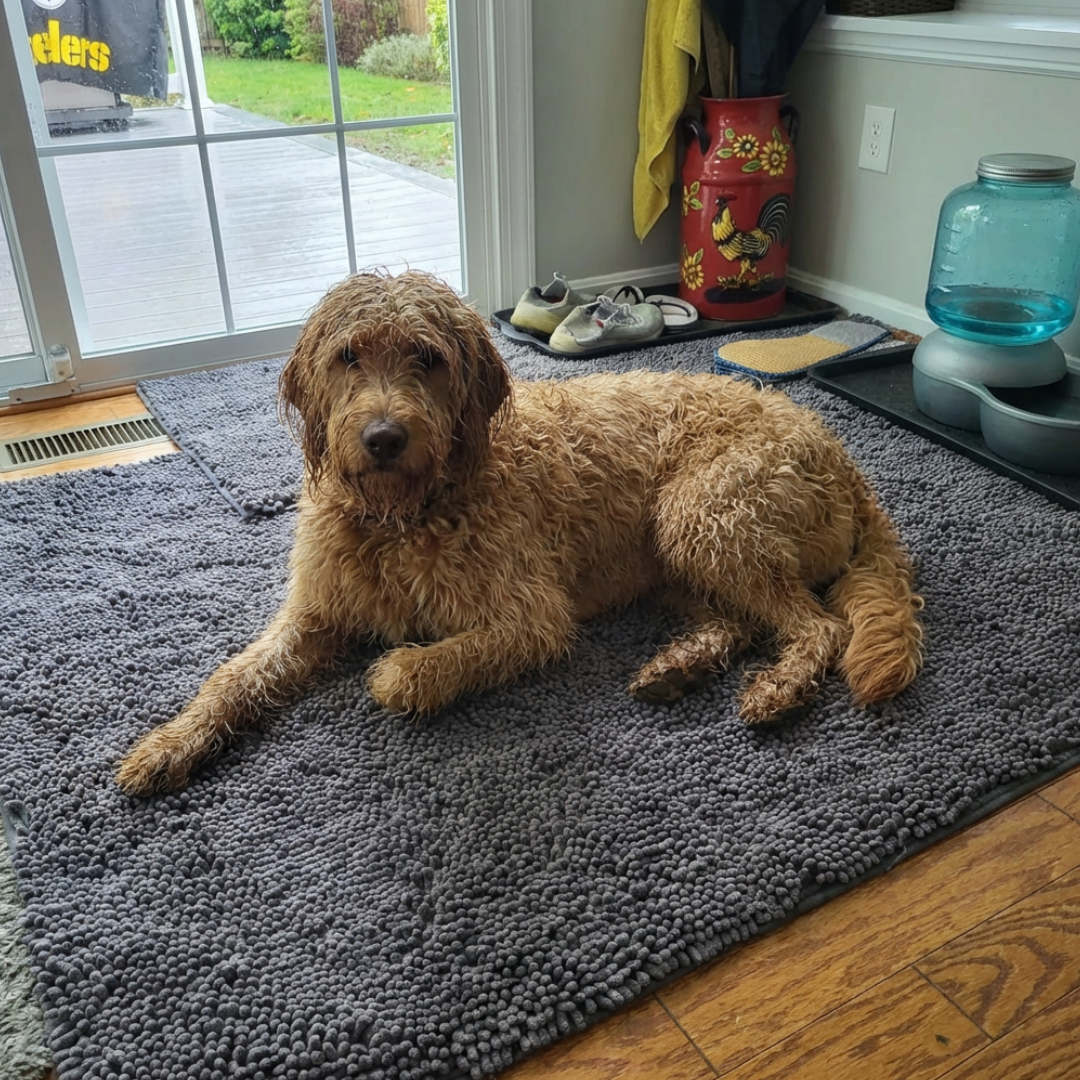 Every rainy morning, every quick backyard bathroom break, every walk through the park — the mess follows your dog right inside. You wipe paws with towels, you mop the floors, and you do it again tomorrow. Cheap mats don’t absorb anything. Towels get wet, smelly, and gross. And no matter what you try, you feel like your home is never clean. It gets tiring, and sometimes you even feel guilty for getting annoyed at your dog. There has to be a way to stop the dirt at the door… right?