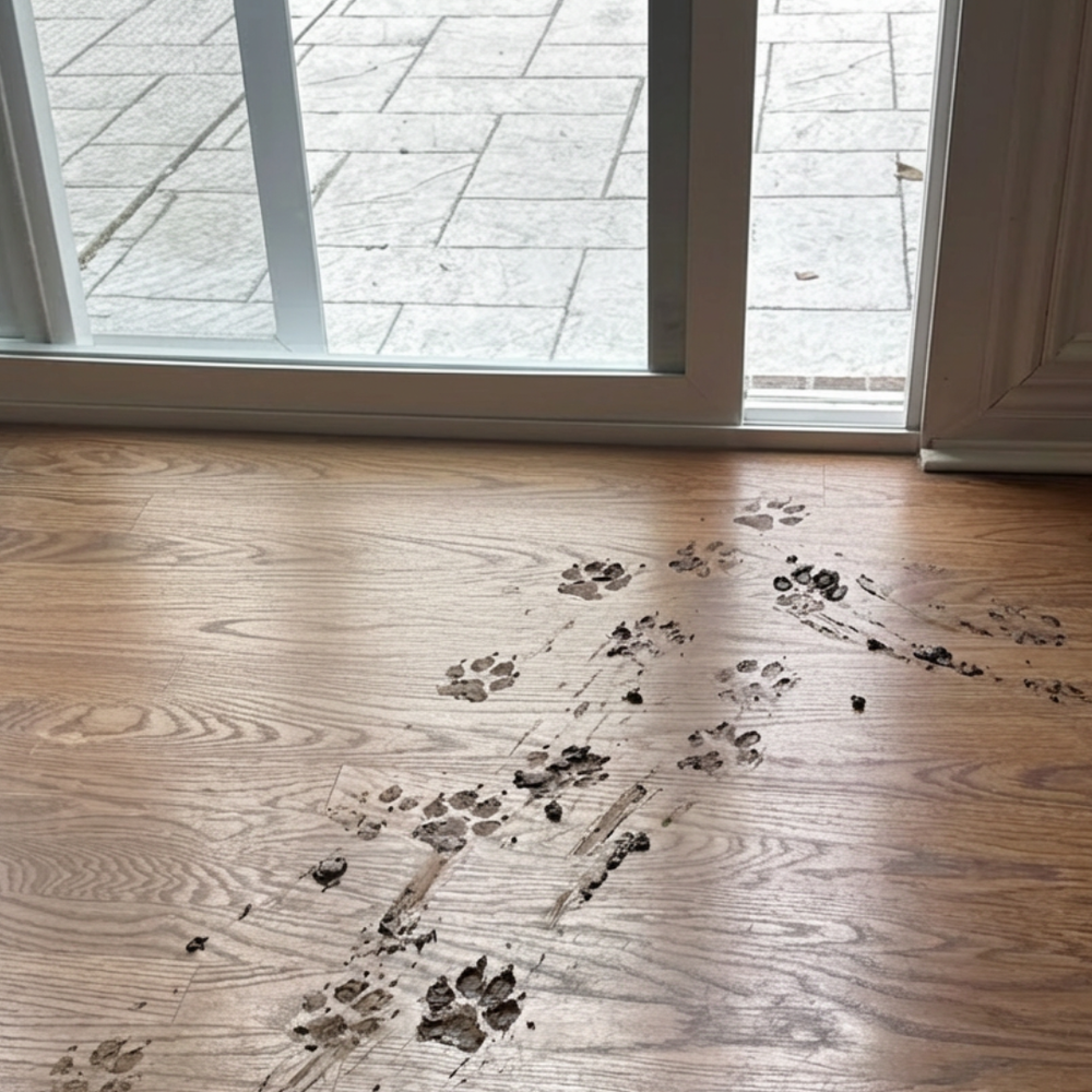 Every walk, every rainy morning, every backyard sprint — the mess follows you home. Towels don’t keep up, cheap mats slide, and wiping becomes a daily routine you never signed up for. You love your dog, but the muddy floors are exhausting.